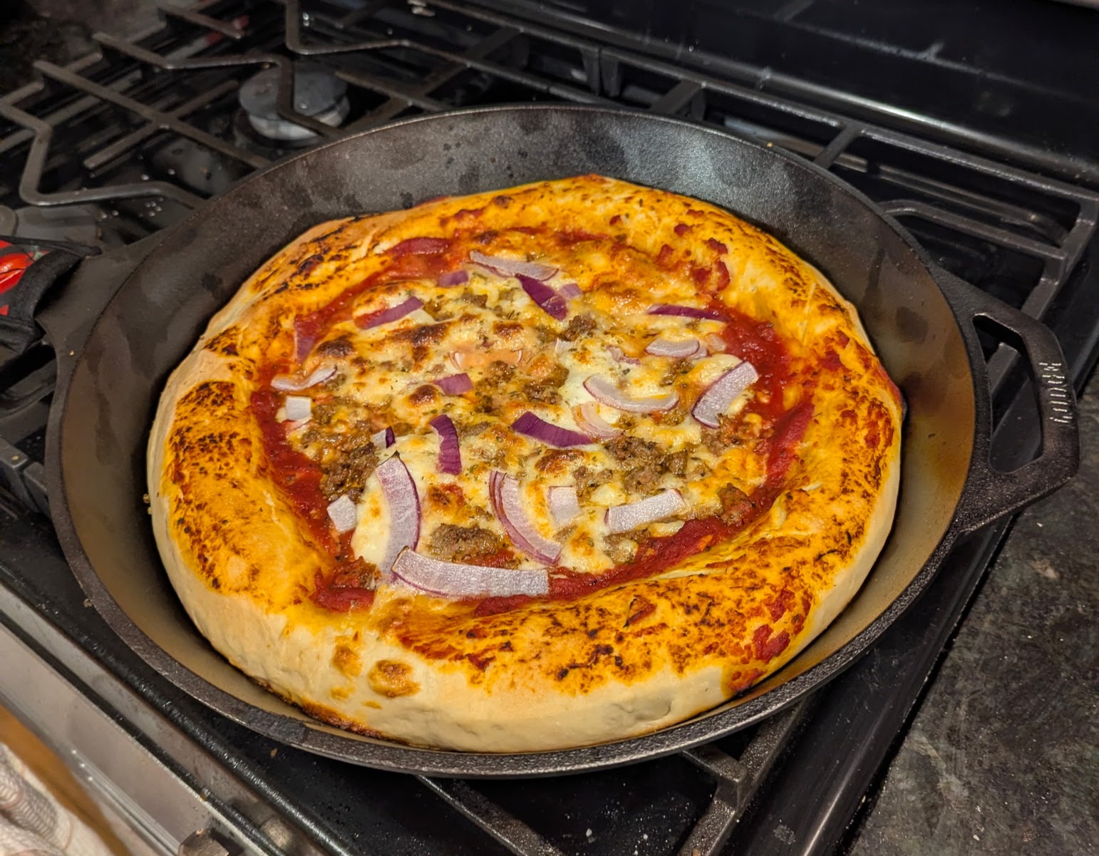Dough is a little thick around the edges, which is my fault, but the dough recipe made 3 so that just means more pizza later!